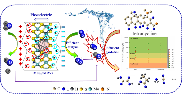 该工作以“High effciently piezocatalysis degradation of tetracycline by few-layered MoS2/GDY: Mechanism and toxicity evaluation”为题发表于化工领域TOP期刊Chemical Engineering Journal上,DOI:https://doi.org/10.1016/j.cej.2022.135173。该文章以XC体育为第一单位,通讯作者为公司XCSport孟凡庆副教授,第一作者为公司硕士研究生霍冰洁。