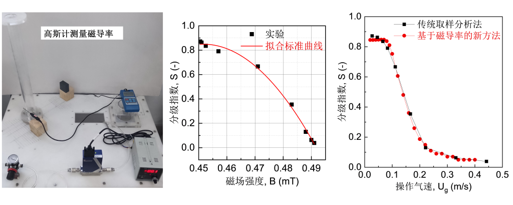 为测量给定操作气速下的分级指数,传统方法在得到稳定流化状态之后,还需使床层塌落,才能进行取样分析,不仅费时费力,还会引入不必要的误差。当流化床中的两种颗粒分别为磁性和非磁性颗粒,朱全红等提出了一种基于磁导率测量分级指数的新方法。在得到塌落床中,只需测量床层的磁导率,即可快速获知分级指数,无需取样和分离两种颗粒,可有效回避取样和分析过程中可能存在的各种问题。该工作发表在FUEL(2023, 340: 127554),XC体育为论文唯一单位,该工作同时申请中国发明专利(CN202210926021.0)。