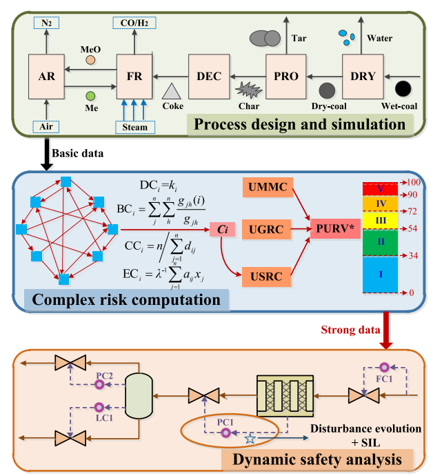 首先,田文德教授团队提出了一种基于过程建模和复杂风险计算的CCLGS动态安全控制策略。利用工艺机理仿真对CCLGS过程进行建模,仿真结果与实验结果吻合较好。通过构造邻接矩阵形成流程的复杂网络,进一步结合单位最大材料系数、单位一般风险系数和单位特殊风险系数计算出各个单元的风险值,定位了风险等级较高的操作单元。针对高风险单元设计了动态控制回路,通过安全完整性水平评估压力控制器的可靠性。该研究将为工业装置的安全控制,有助于提高化工工艺本质安全性。研究成果在国际知名学术期刊Energy(中科院一区TOP,IF=9)上发表了文章“Dynamic optimal control of coal chemical looping gasification based on process modeling and complex risk computation”(论文链接:https://doi.org/10.1016/j.energy.2023.128451)。XC体育为论文的第一单位,XCSport田文德教授为论文的通讯作者,课题组崔哲老师为第一作者,硕士研究生孙阳为第二作者。
