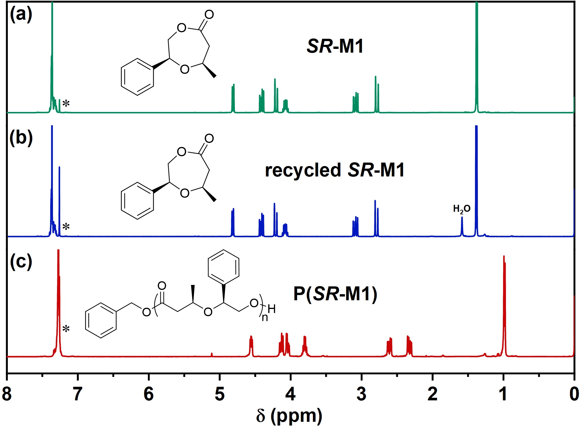 最后,作者利用辛酸亚锡实现聚醚酯的解聚回收,回收后的单体保持原有的手性构型,并且可以再次聚合为与原聚合物分子量相近的聚合物。