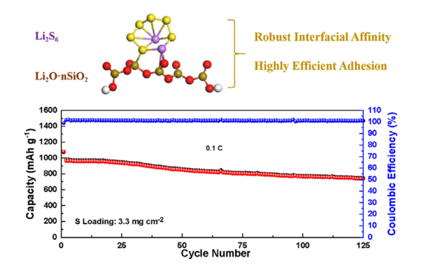相比于传统的有机高分子粘结剂,无机粘结剂往往具有更强的分子极性,能够与极性多硫化锂形成更强健的化学吸附作用,从而有效地抑制穿梭效应。此外,通过交联反应,构建无机聚合物-有机高分子网络状粘结剂能够进一步提升粘结剂的机械强度,有效地稳定硫正极的机械结构。近日,刘杰副教授和王磊教授等基于聚硅酸锂无机粘结剂构建了一系列多功能粘结剂,显著提升了高载量锂硫电池的电化学性能。相关成果以XC体育为唯一通讯单位发表在Journal of Colloid and Interface Science(J. Colloid Interface Sci.,2023,629, 1045大类一区)和Chemical Engineering Science(Chem. Eng. Sci.,2023,282, 119294化工领域TOP期刊)杂志上。