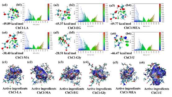 同时,研究成果以“Probing the interaction mechanism of choline chloride-based deep eutectic solvents with flavonoid and polyphenol systems”为题目,发表在知名国际期刊Journal of Molecular Liquids (SCI一区TOP期刊),论文DOI链接为doi.org/10.1016/j.molliq.2024.125310。论文第一作者为XCSport2023级硕士研究生魏家晖,通讯作者为徐环斐,XC体育为第一单位和唯一通讯单位。论文基于分子模拟研究了六种不同类型低共熔溶剂提取花卉中活性成分过程中相互作用能、氢键数量、作用力类型以及溶剂分布程度,揭示了相互作用机制。采用量子化学计算以芦丁、没食子酸、花青素的结构为目标分子,探究相互作用反应位点,结果表明既有羟基又有氨基的乙醇胺作为氢键供体与氯化胆碱所形成低共熔溶剂在提取过程中展现出了最优的效果,解决了花卉活性成分提取效率低的问题。