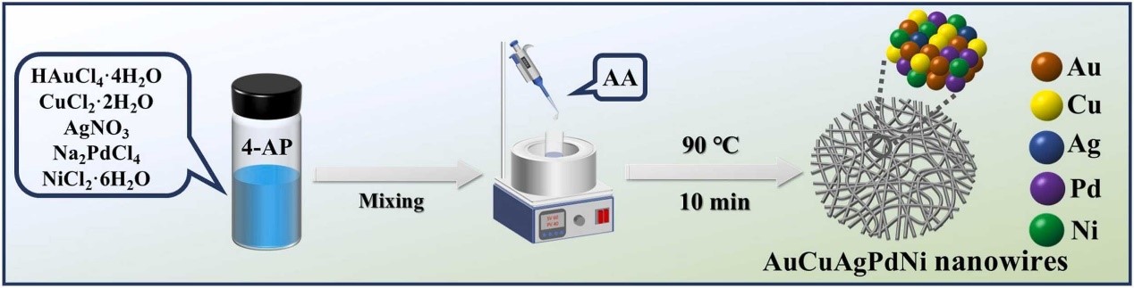 图1.高熵合金AuCuAgPdNi纳米线的合成示意图