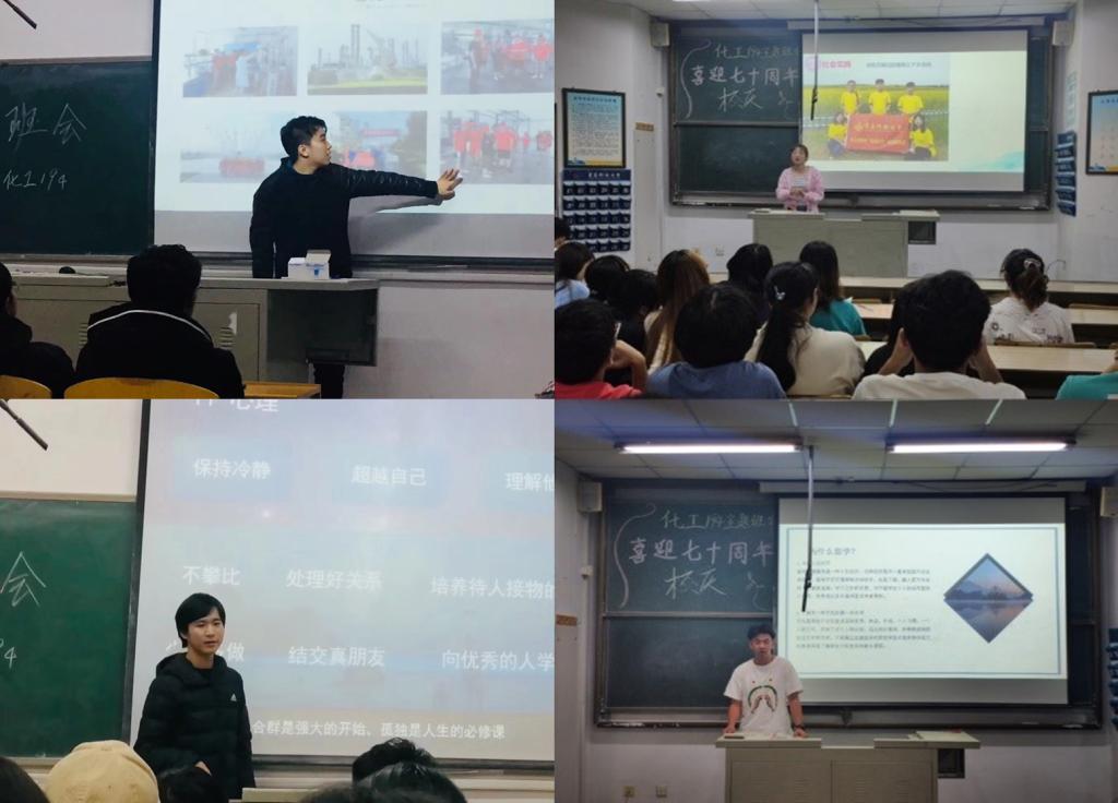 9月17日晚,XCSport化工194班在第一教学楼203室召开“喜迎70周年校庆”主题班会,由化工194班班主任徐环斐主持,并邀请到孔毅、曹双双、宋彩娜、周欣然、张杰、刘庆存、刘耀泽、葛瀚文等8位优秀学长学姐做客交流。
