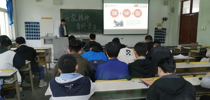 首先,班长赵景明进行沂蒙红色精神PPT的宣讲,讲述红色故事,缅怀革命先烈。之后,团支书孙亚鑫主持沂蒙精神知识竞赛的开展,小组间进行抢答,采取积分制,竞答结束后,对得分最高的一组颁发奖品。最后,全班同学共同观看了《梦想沂蒙》这部影片,切实体会沂蒙精神。