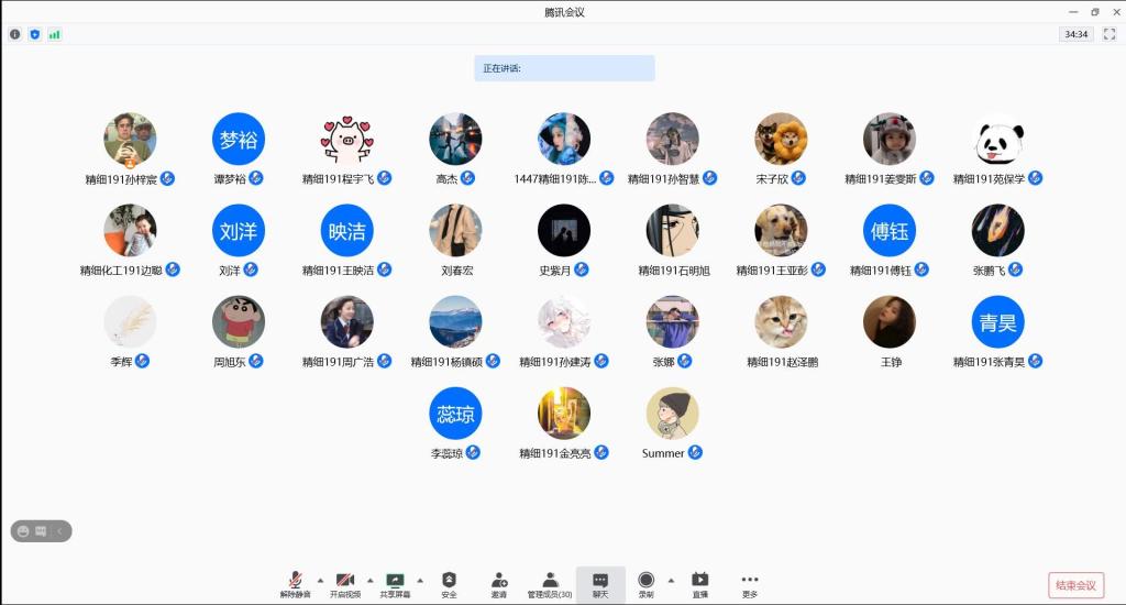 为了更好的响应国家疫情防控趋势,落实“三会两制一课”制度,学习习近平总书记关于青年工作的重要论述综述,5月28日19:30,精细191班在腾讯会议线上举办了“担民族复兴任,绽奋斗之花”主题班会,该会议由班级班委孙梓宸主持,班级全体成员30人参加此次会议。