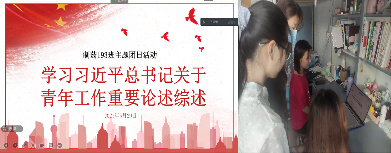 5月29日,制药193班团支部在线上开展“学习习近平总书记关于青年工作重要论述综述”主题团日活动。本次活动由团支书左嘉敏、班长李明哲组织,全班共28名同学参加,左嘉敏主持此次活动。