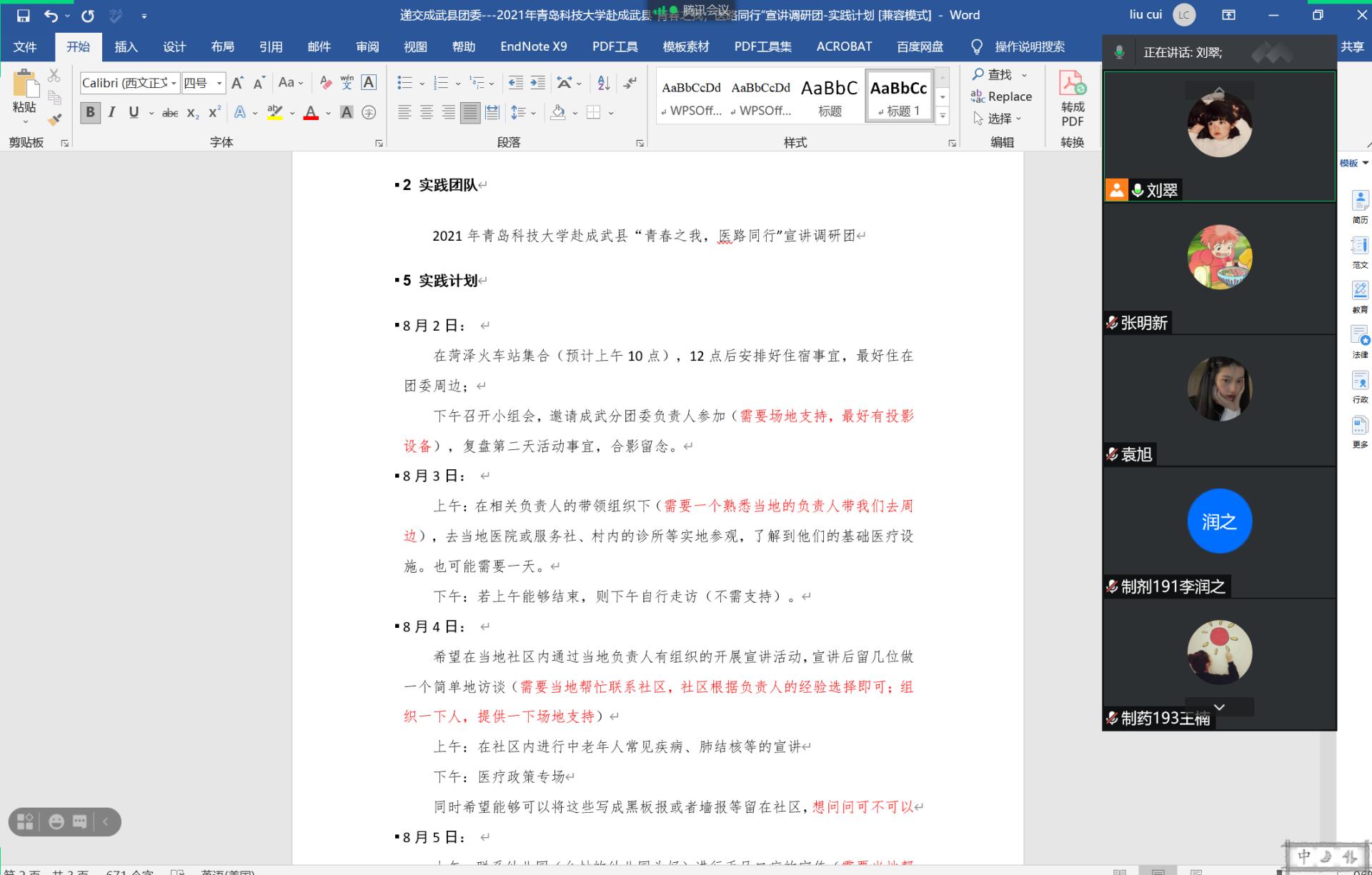 会后,XC体育赴成武县“青春之我,医路同行”宣讲调研团于7月19日积极组织召开腾讯会议,依据实践地团委的要求调整实践计划,在系统分析专业学科特色和当地实际情况的基础上,分工合作,总结归纳出了线上与线下相结合、“九个一”等实践战略部署。