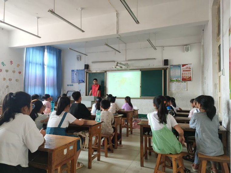 开学第一课,支教团成员向小朋友们介绍及学习袁隆平钟南山院士等时代楷模的故事,以其光辉事迹激励小朋友们们树立远大理想,增强民族认同感和自豪感,向英雄先辈看齐。