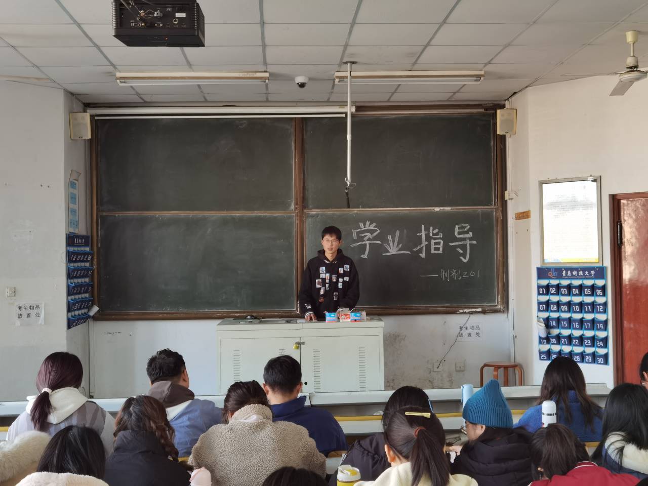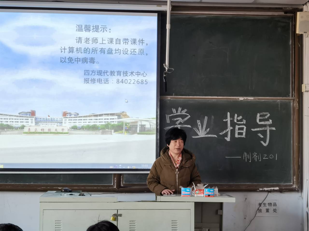 2021年11月24日上午11点,XCSport药物制剂201班全体同学在第一教学楼302教室举行了“学业指导”主题班会。本次班会由班主任赵文英老师主持,以“做好考前复习,诚信应对考试”为主题,赵文英向同学们讲解了考前复习及笔记的重要性,多名同学分享了自己的复习方法。此次班会对同学们进行了充分的学习动员,提高了同学们的学习意识。