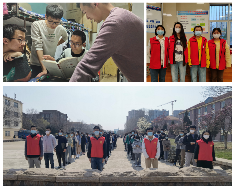 为了更好的展现宿舍风采,凝聚防疫青春合力,化工实验191团支部以宿舍为单位开展团建活动。慧园乙南214成员响应社团联号召,在餐厅进行志愿活动。慧园乙南215开展寝室“映”象活动,拍照记录珍贵瞬间。C404寝室开展读书交流会,围读《习近平与老员工朋友们》《沂蒙精神》,并分享读书心得。B309寝室开展“桌上足球”活动,有效缓解疲劳。此外,预备党员与发展对象带头开展疫情联防联控工作,在核酸抽检时充当志愿者,清点人数,维持秩序,在图书馆、教学楼、操场等地发放口罩,提醒大家保持间距,充分发挥先锋模范作用。