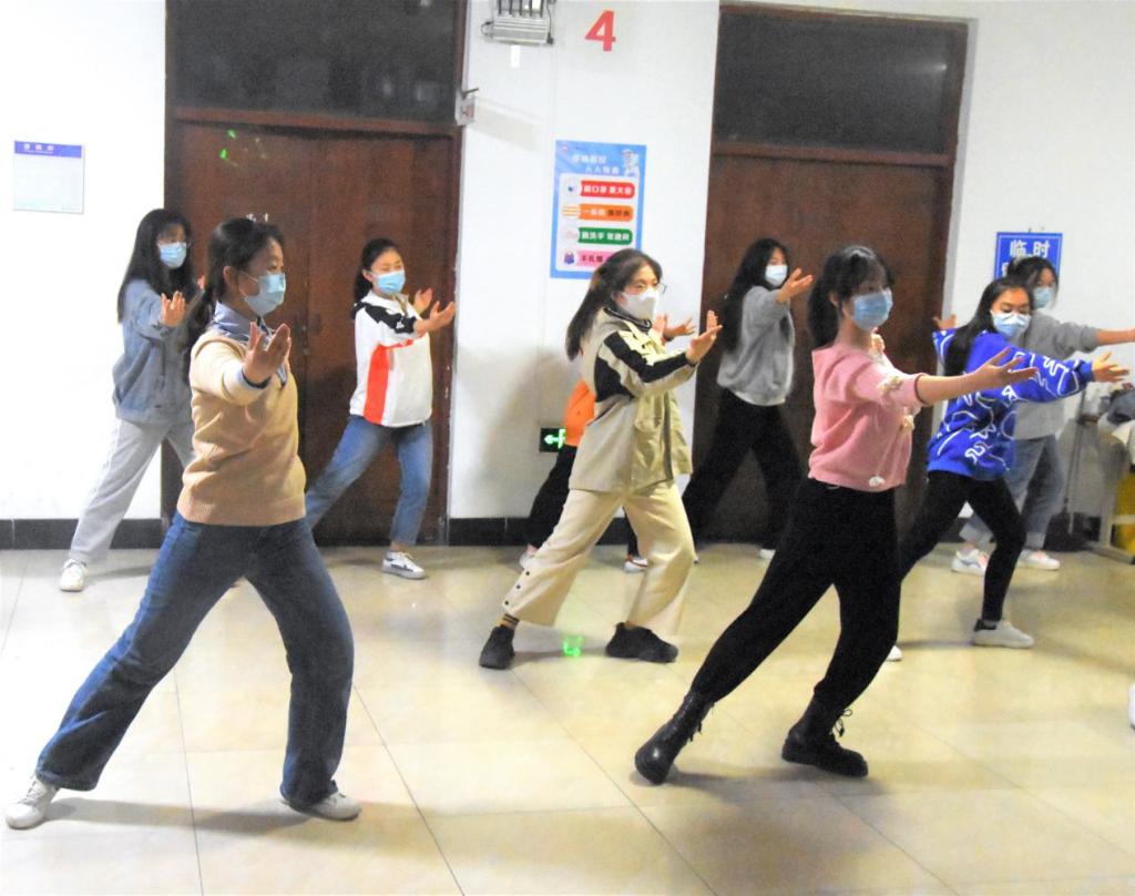 本次排舞的曲目为《美丽中国我的家》,舞蹈为圆舞曲风格,舞步简洁大方,易学易记。歌曲主题鲜明,具有积极向上的正能量,表达了同学们对伟大祖国的深厚感情。在排练过程中,首先,由领舞成员给大家进行舞蹈分解动作的讲解,同学们认真倾听,并跟随着领舞数的节奏八拍进行一次次的练习。接下来,同学们对舞蹈动作进行跟音乐练习,在一遍遍的反复练习后,同学们的动作也从开始的参差不齐变得整齐有序。最后,在领舞的带领下,同学们对所学过的舞蹈动作进行了整合练习,舞步优美,训练效果显著。排练结束后,同学们纷纷表示,排舞过程虽累,但很开心,在这几天的训练过程中,结识了很多兴趣爱好相同的朋友,也学到了很多舞蹈知识,一整天学习的疲惫在训练过程中得到了很好的缓解。
