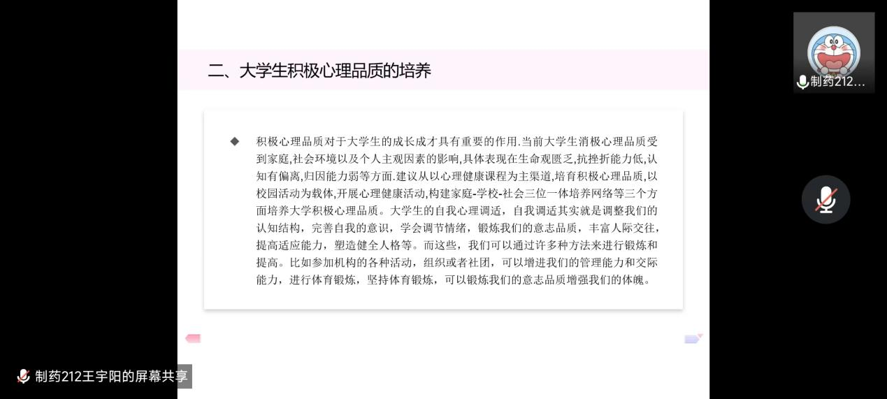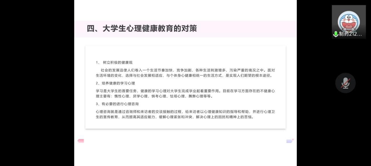 为深入了解员工们在封校期间的心理健康状况,制药212班在5月10日下午举办了心理健康主题班会。这次活动由班主任陈萃老师负责主持,班长协同其他委员组织。