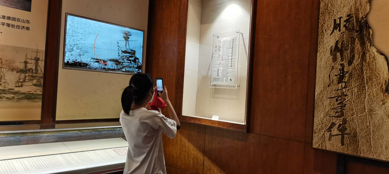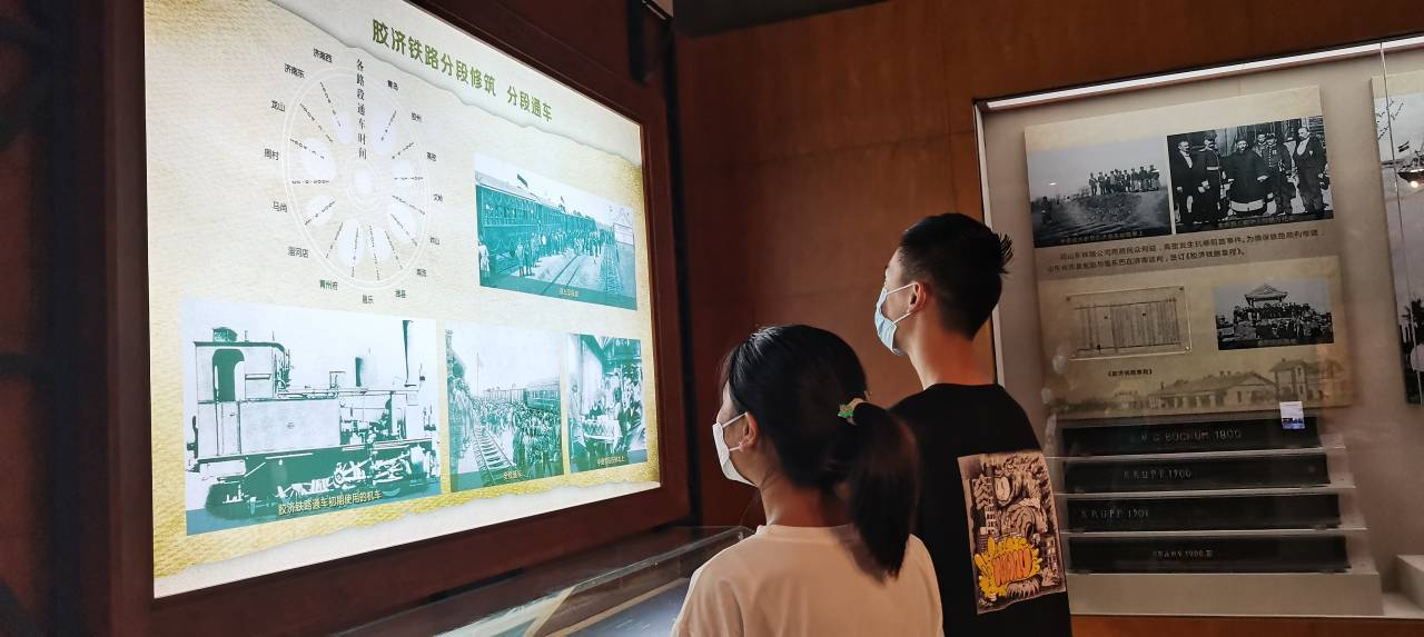 穿过博物馆的大门,队员们来到介绍胶济铁路的修建背景及过程的展区。1867年,德国地理学家李希霍芬考察中国18个省份,认为山东胶州湾有着绝佳的海外殖民条件,可修建一条从青岛到济南的铁路,横贯齐鲁。德国人占据胶州湾后,德国人新宿计划建设铁路,仅仅三个月便展开勘测设计,又经过三个月后全面开工建造铁路,并建设了四方机车车辆厂,调来零件。1919年,日本霸占了位于山东的胶济铁路,1922年,中国赎回了铁路,抗战胜利后,这条命运多舛的铁路才回到中国人的手中。队员们看着胶济铁路的修筑和通车时间图,百年前铁路工人们铺建铁路时滴下的汗水以及火车运行时的滚滚浓烟仿佛就在眼前。