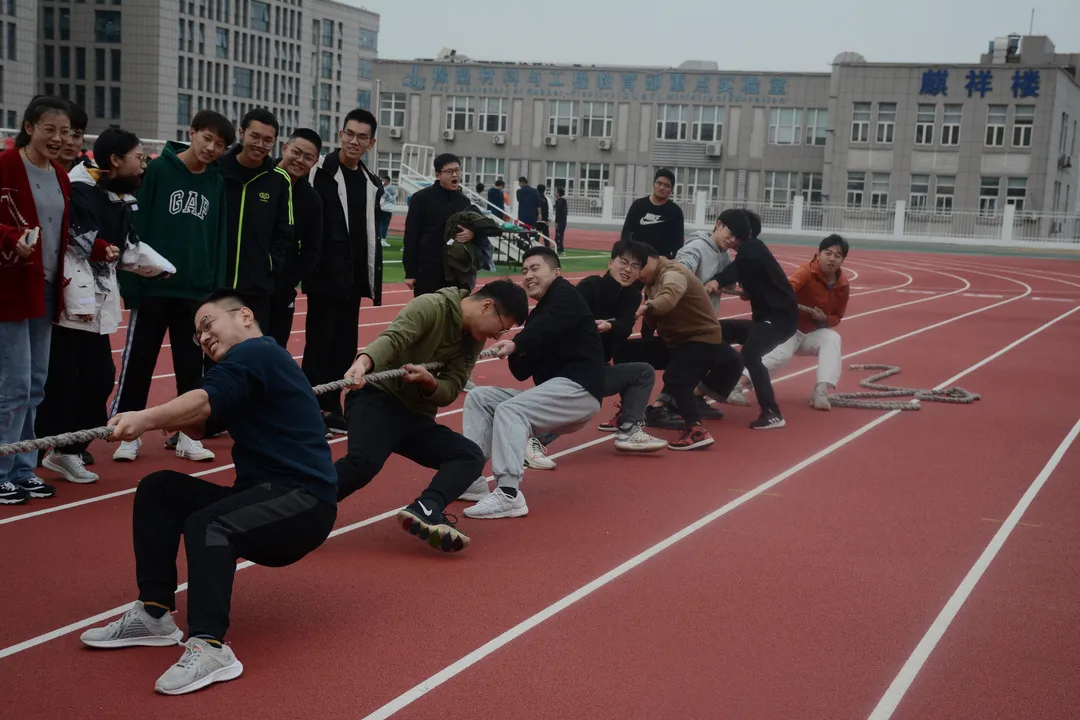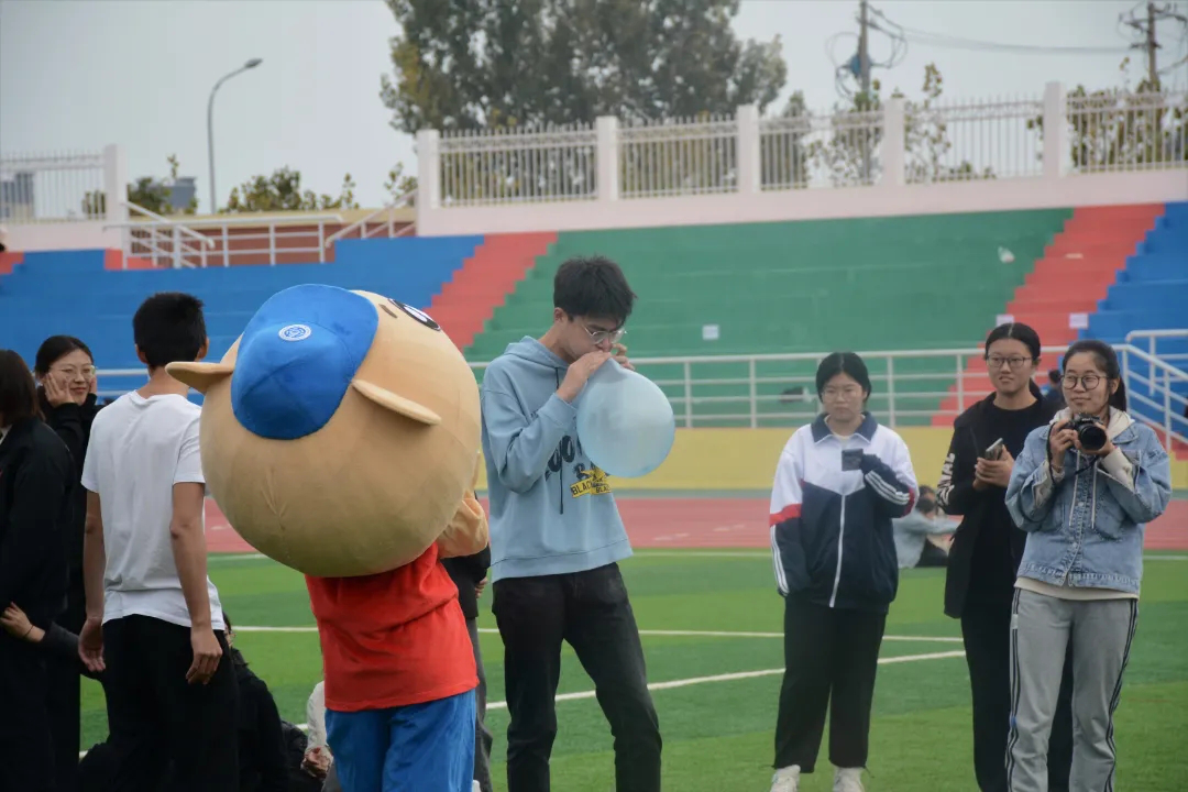 一根绳上一条心,凝心聚力势如金。大家都铆足劲儿用力拉,斗志昂扬尽显青春风貌。这是一场力量的比拼,亦是协调合作能力的较量。噼啪声纷纷响起,又到了踩气球环节。同学们纷纷冲向对手班级,一个走位躲过“飞来横祸”,又一个灵活扭身对准别人的气球猛踩一脚,欢笑声与气球的爆炸声此起彼伏。场面激烈,气氛活跃,欢乐洒满了操场。
