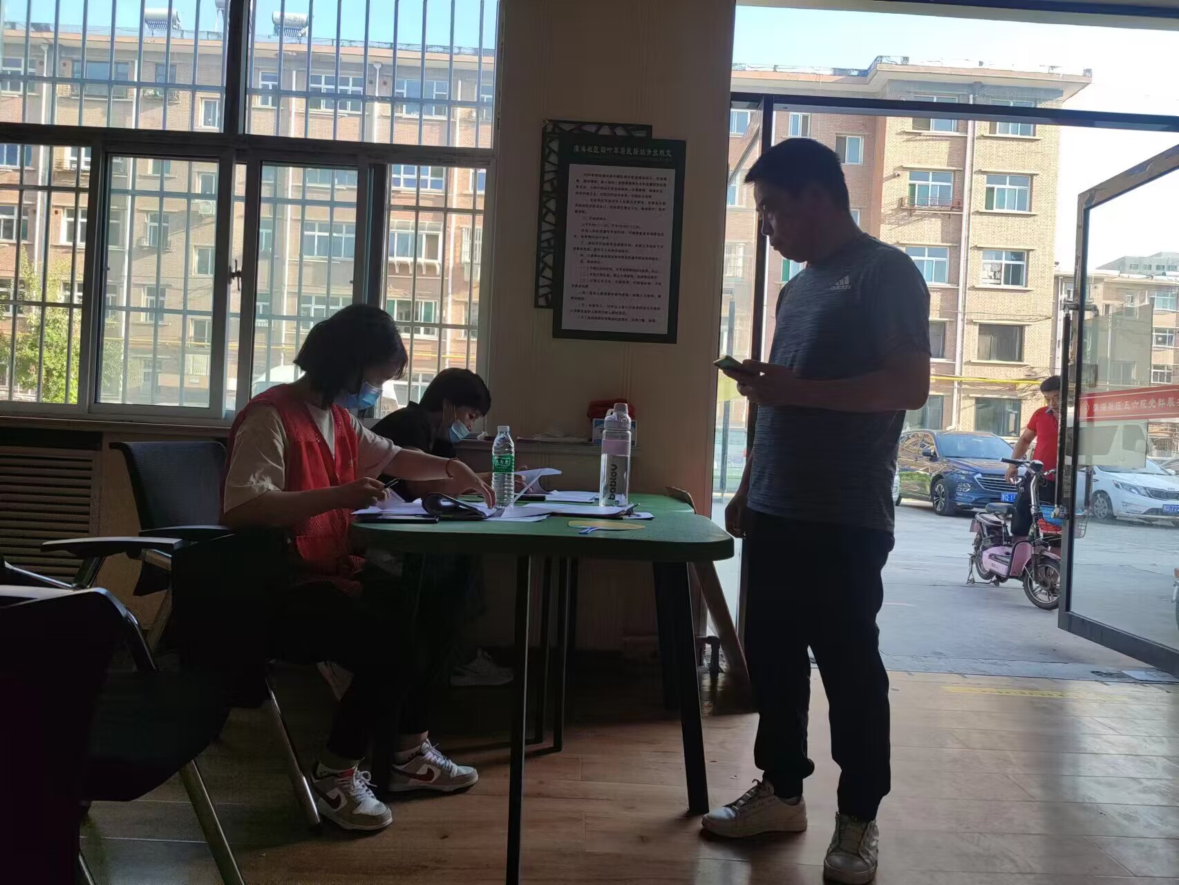 同学们深知防疫工作人员的不容易,7月29日,便主动联系当地团委,申请成为小区的防疫志愿者,协助工作人员完成工作。他们被安排到潞州区淮海五六院小区进行协助,与志愿者团队沟通好后,安排每一个志愿者值班时间,确保在核酸采集时间内都有志愿者站岗,维护防疫工作的正常开展。同时,针对外来返长居民进行实名登记,测量体温,查看行程码和健康码,保证对任何来长人员的登记不遗漏;并督促其在家进行14天居家隔离的情况,每天追踪体温和身体情况,做到及时反馈。