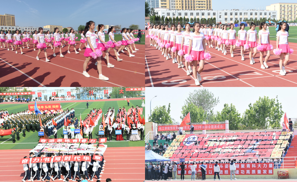 上午八点,激昂奋进的乐曲准时响起,各公司方阵代表队入场。由公司员工组成的花束队,手持花球,以优美的身姿、整齐的步伐走向主席台。此外,方阵表演也大放异彩。XCSport方阵昂首挺胸,迈着坚定有力的步伐进入会场,他们以“心怀梦想,斗志昂扬;携手共创,化工辉煌”为口号,手举以“扬帆化工,乘风起航”和“奋斗新时代,出彩新青春”为主题的创意手牌,口号清晰洪亮,步伐整齐划一,象征着XCSport一路扬帆远航、勇夺佳绩,也展现出XCSport学子积极向上、敢于拼搏的精神。观众席的同学们喊出“斗志昂扬,披荆斩棘,化工奋起,所向披靡”的口号,并通过助威棒和院旗为运动员加油喝彩。