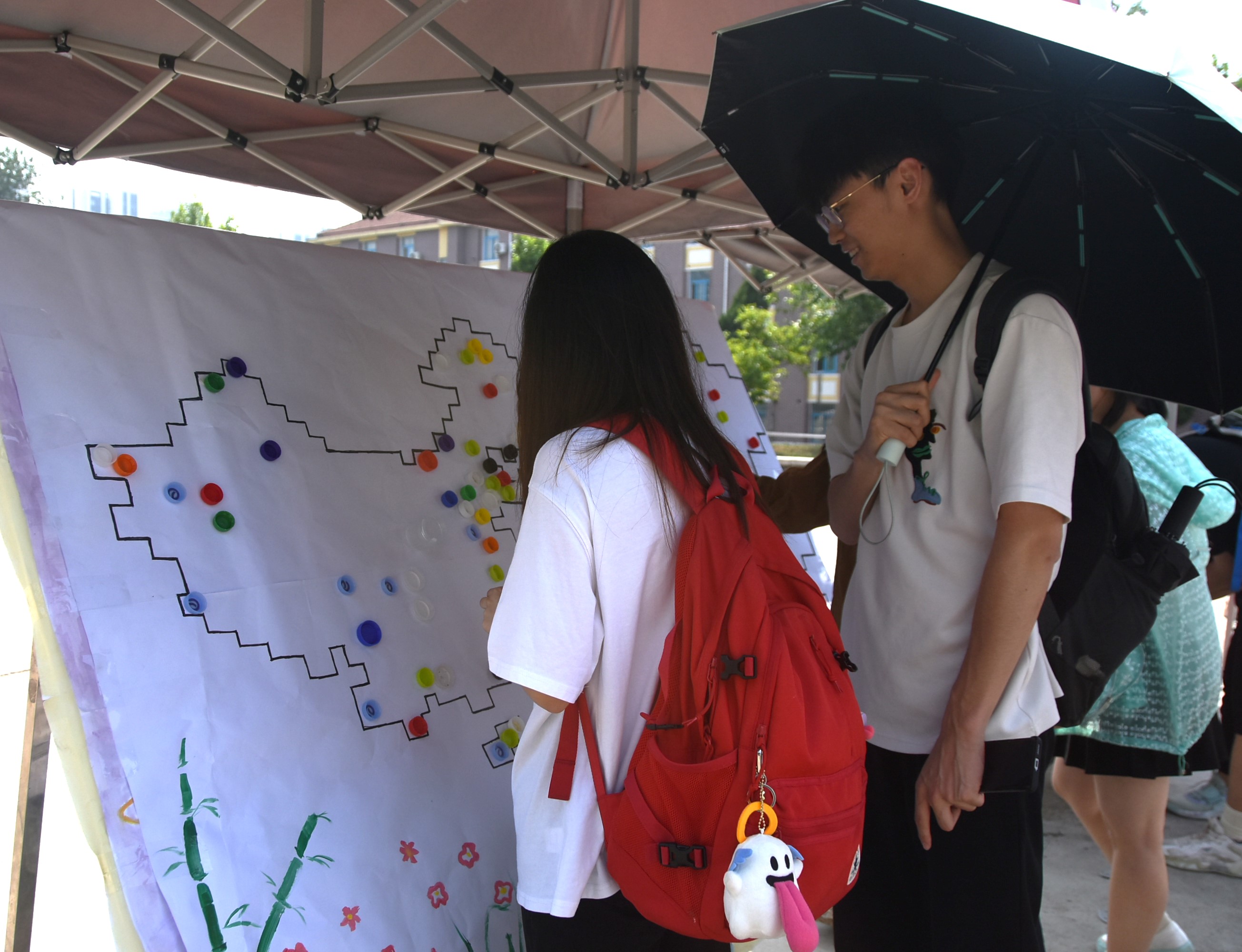 本次活动主题分为“低碳”玩家、“追蓝行动者”两个部分。活动开展期间,同学们踊跃参与,现场氛围十分活跃。在“低碳”玩家活动中,同学们携带着自己的废旧塑料瓶、易拉罐等到达活动现场,在权益部工作人员的指引下,同学们有序地将瓶、罐投入收集的麻袋中,然后将其多余的塑料瓶盖粘贴在展报上。后续工作人员会将转卖废品获得的资金全部捐献给贫困山区的儿童,为社会贡献自己一份力量。在“追蓝行动者”签字宣传活动中,同学们首先对破坏环境等不文明的现象进行了反思和讨论,随后在活动现场的横幅上签下自己的名字以表达爱护环境、保护地球的决心,此次活动切实贯彻了人与自然和谐共生理念,为低碳中国增添了一抹色彩。
