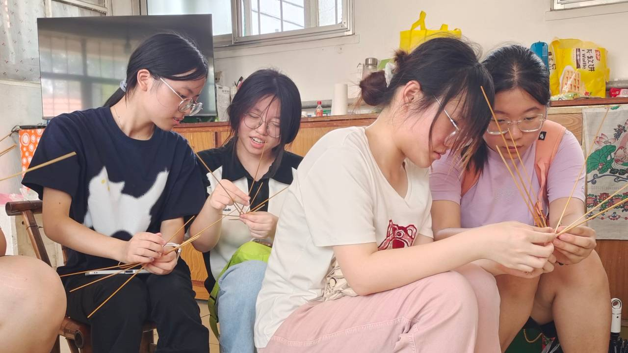 观察团首先来到龙湾姜家村拜访了当地村民——姜奶奶。姜奶奶耐心地教导他们最简单的草编七股草编技巧,并指导每个人编织一个手环。七十多岁的姜奶奶在给观察团展示如何编织草编的过程中,她的脸上洋溢着幸福与快乐的表情,她用心地享受编织草编的过程,手上的编织速度丝毫没有减慢,在她的眼神里是对于传统文化的一种传承。