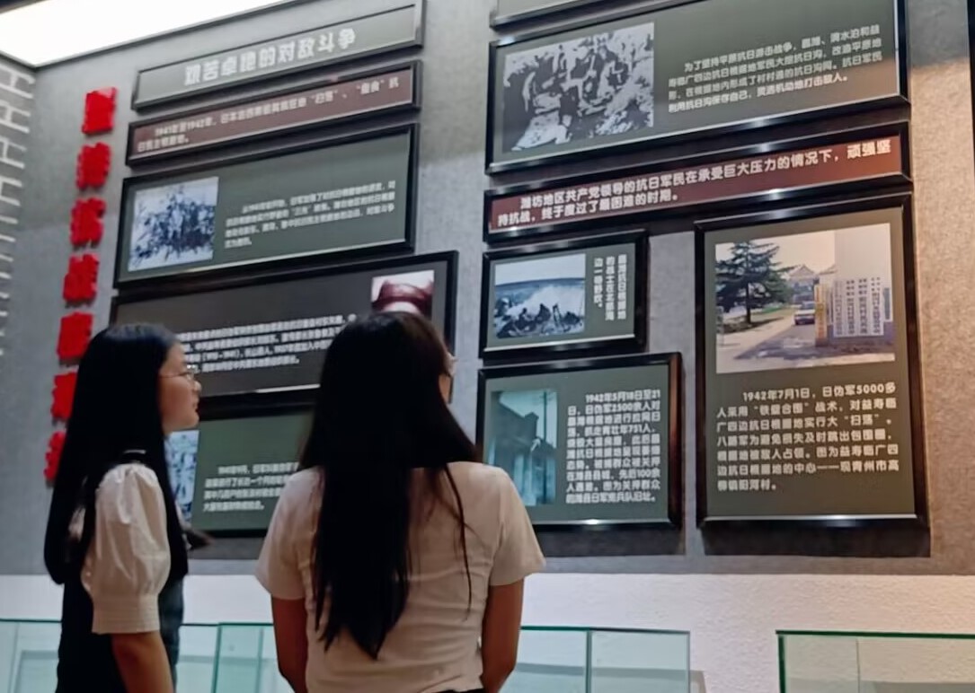 展厅场馆中,陈列着一件件革命文物、摄影刊物、文字手稿等,这些弥足珍贵的相片与文物,涵盖了潍县革命历史和红色文化的精髓,宣讲团成员们在回顾潍县人民光荣的爱国主义革命斗争之路的同时,深刻感受到抗战时期中国共产党带领潍县人民英勇抗击侵略者并取得抗战胜利的光辉历史。回顾峥嵘岁月,传承红色基因,借助展厅中生动的浮雕与历史图片资料,潍县战士与人民英勇斗争的英烈事迹让宣讲团成员们感受到先辈们为了理想信念不畏强敌、不惧风险、敢于斗争、勇于胜利的革命精神。