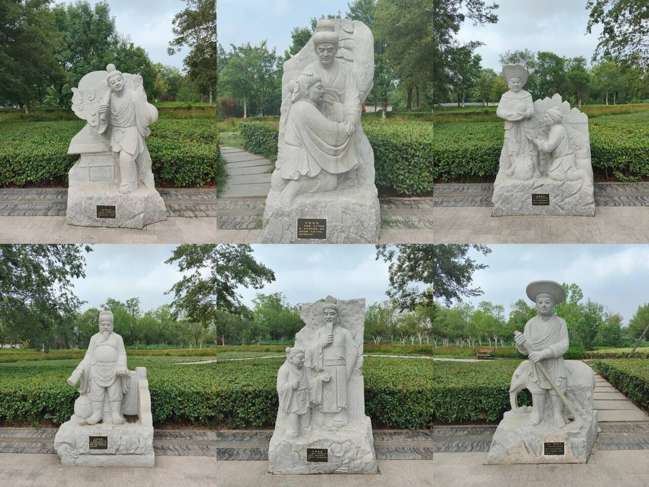 探索活动正式开始后,石雕文化探索团一行首先来到嘉祥石雕艺术公园,近距离感受石雕艺术的精美绝伦。嘉祥县不仅是著名的“石雕之乡”,也是“曾子故里”。曾子不仅是中华民族五千年文化史上有名的大孝子,也是中国传统“孝道”文化的重要创立者。因此嘉祥的石雕艺术在秋毫之末中都渗透着曾子孝道观的魅力。就像嘉祥石雕广场上的这“二十四孝图”所带给探索团成员们的感触:这里有东汉齐国江革的行佣供母;有“天下无双,江夏黄香”的扇枕温衾;亦有宗圣有言“有客忽至,吾啮指以悟汝耳”的啮指痛心……而正因石雕这一惟妙惟肖、栩栩如生的承载方式让我们有机会见证了中华古今精彩绝伦的忠孝文化。
