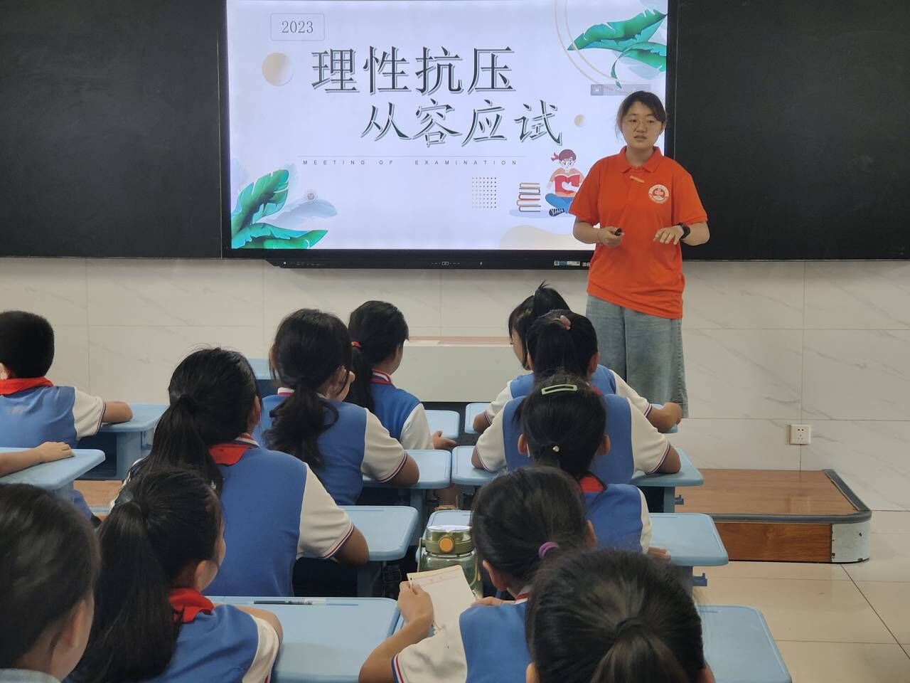 习近平总书记在党的二十大报告中提出:“重视心理健康和精神卫生。”心理健康可以促进青少年的全面发展。关爱团成员张贻宁开展了“理性抗压,从容应试”心理健康科普课堂,她不拘于传统的课堂形式,鼓励小朋友们上台分享自己的考试经历和考试经验。小朋友们对于这个贴近生活的问题积极发表自己的看法:有的认为自己每次考试都很紧张导致成绩不理想;有的认为自己考试太过放松而常常做错题目等等。张贻宁对于小朋友们的问题都给予了耐心的回答,并提醒小朋友们应对考试应该怀着从容的态度,理性抗压的能力。心理健康是乡村儿童健康成长的重要部分,关注乡村青少年心理健康,帮助小朋友们做自己情绪的主人具有重要意义。