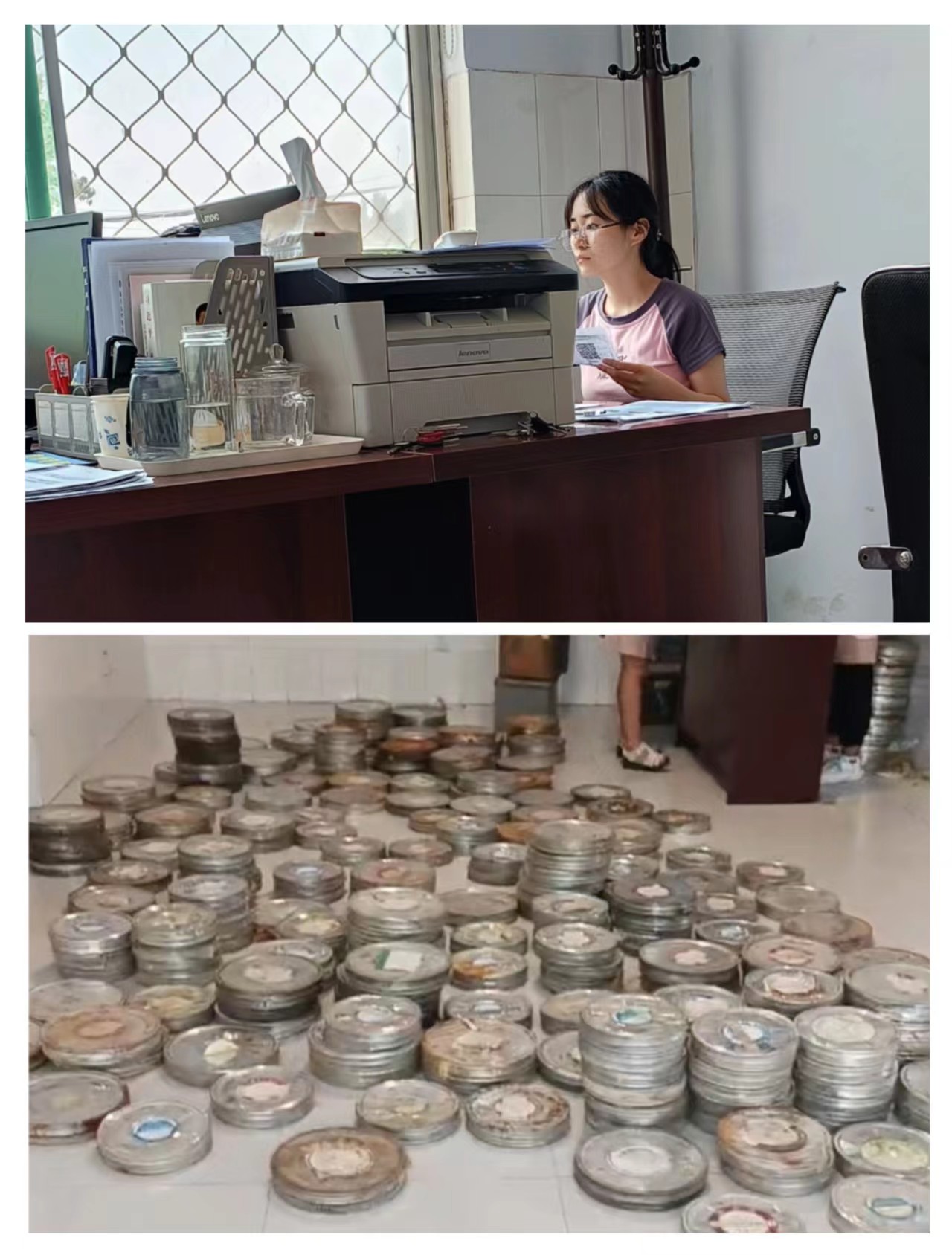 初来时,她被分配到孟寺镇文化站工作,负责在数字文化大平台—文化文艺上传本镇各村的文化惠民活动展开时间及内容、照片。在短短几天里,她追赶上了各个分类活动的任务数,也体会到每天盯着屏幕、在成百张的照片中挑选合适的照片的不易。后又投身于文化站电影胶卷的登记分类活动,360张份胶卷,一份份登记再分类整理,这是个体力活,每天都让她大汗淋漓,但也切身体验了工作生活。