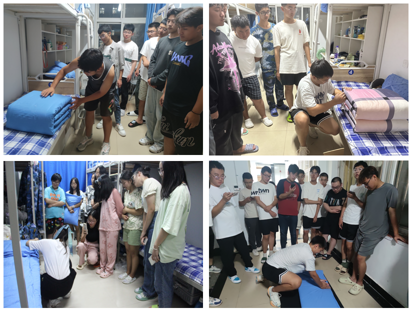 本次的叠军被训练活动,由23级带班学长学姐以及22级内务整理优秀的员工指导。首先,由22级内务整理优秀的员工为同学们讲解了叠被的步骤、方法以及技巧。每位同学都认真聆听和仔细观察,并且用手机记录下了关键步骤。接着,示范结束后,学长学姐们为同学们解答了关于叠被方面的问题。