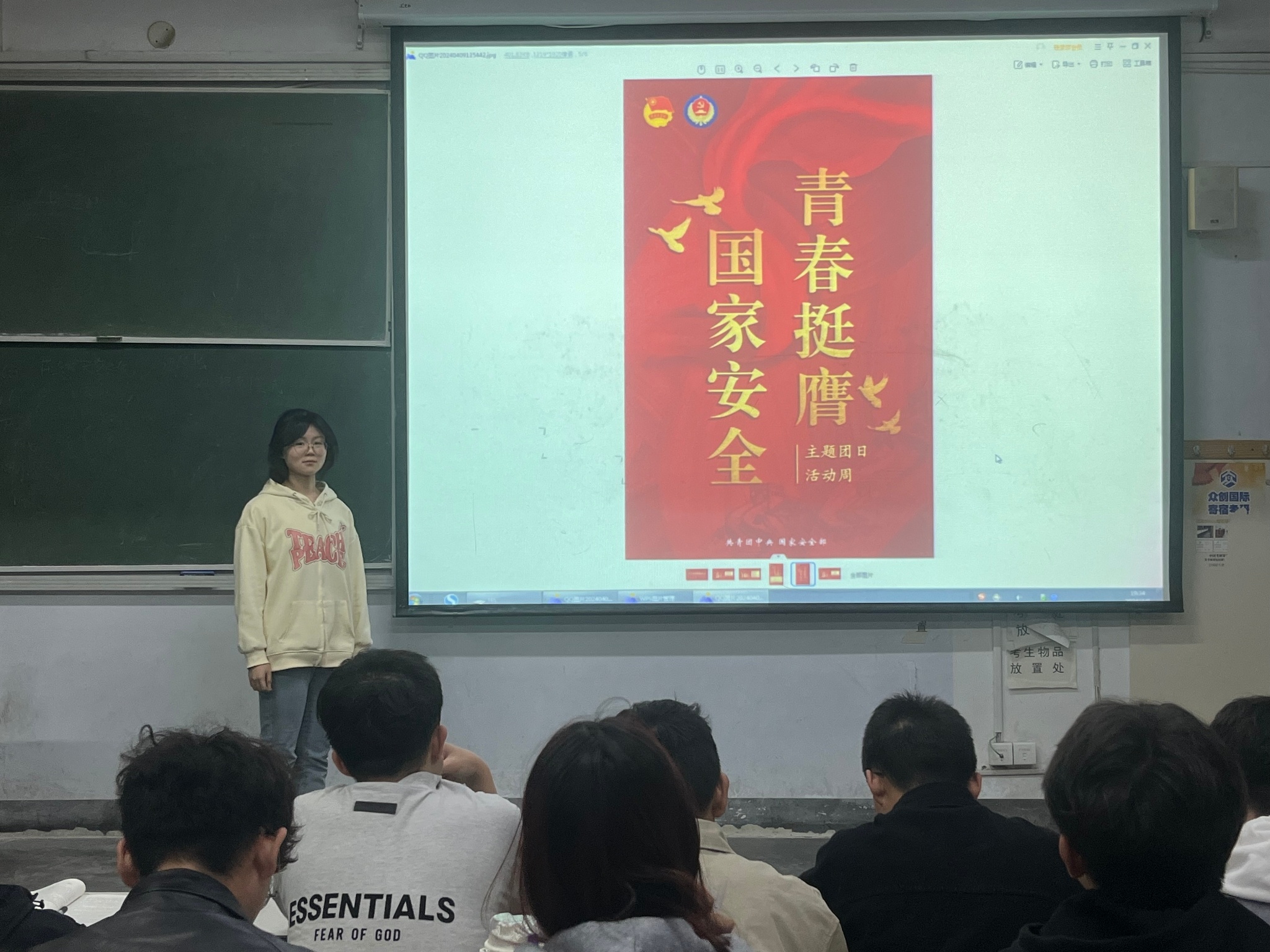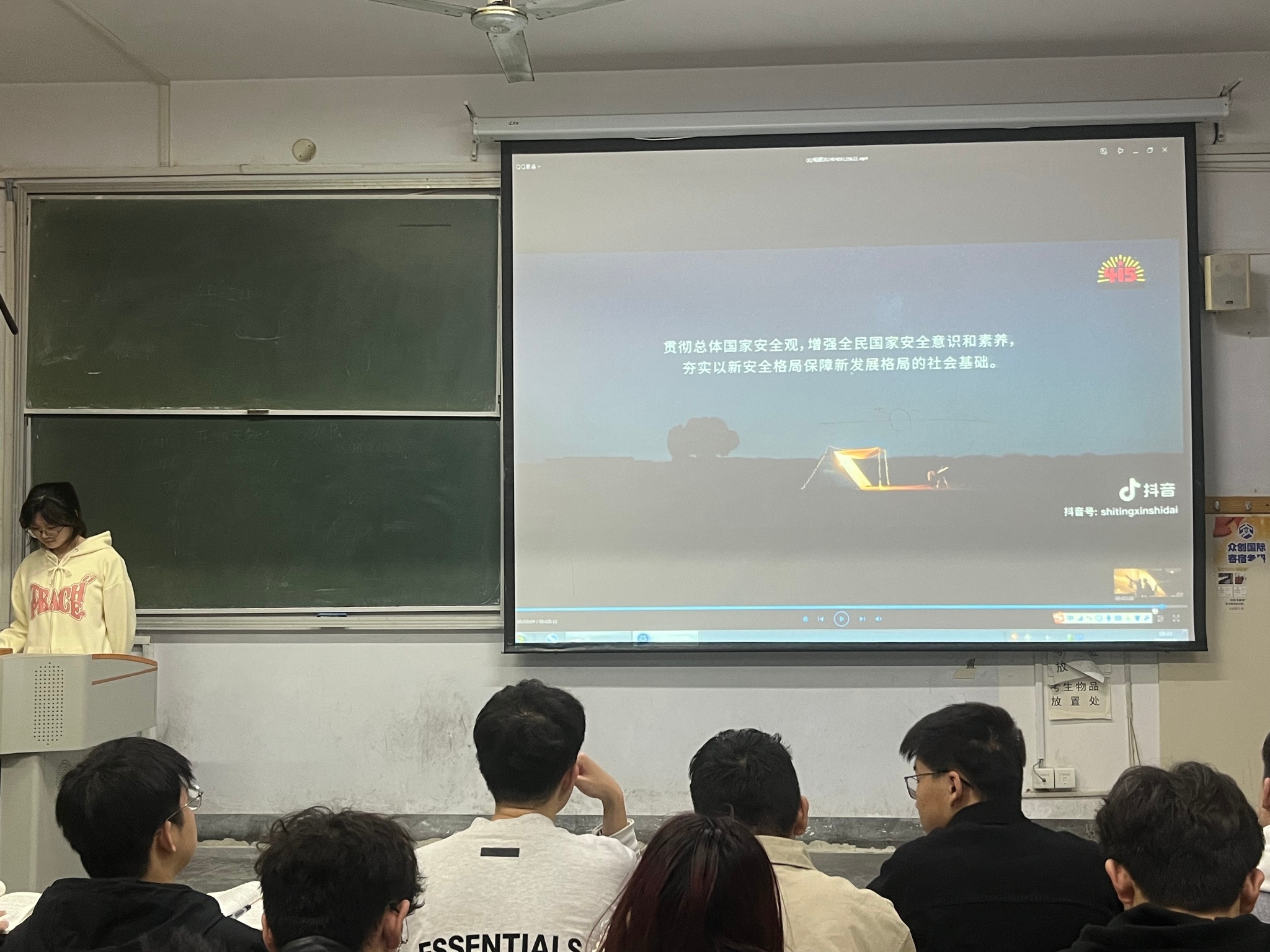 在习近平总书记创造性提出总体国家安全观10周年和第九个“4•15”全民国家安全教育日到来之际,4月14日晚,化工实验231班全体同学于三教201开展学习“以青春之我,担国安之责”主题团课。