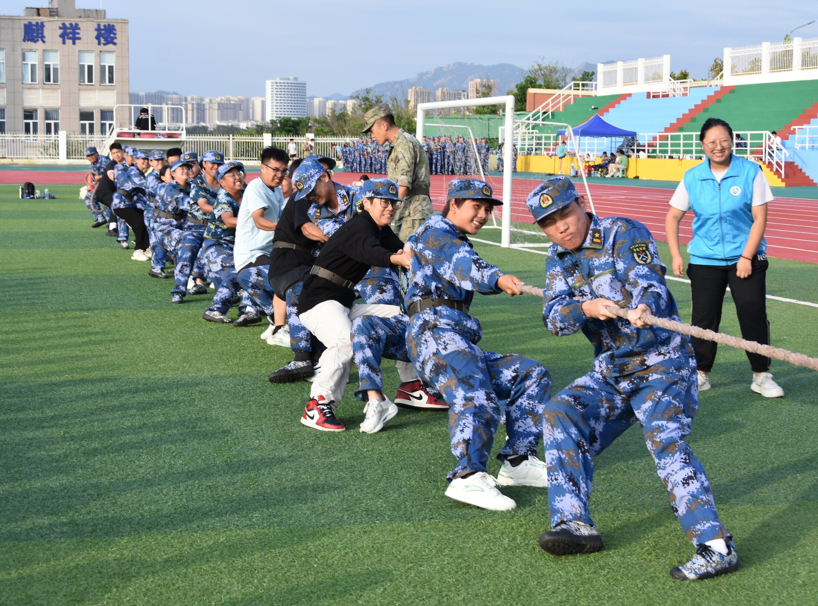 为庆贺中秋佳节,丰富军训生活,提高同学们的凝聚力,9月14日下午四点半,XCSport在东山操场上举行“盈月揽芳华,金秋聚合力”拔河比赛。公司党委书记孙明媚、党委副书记贾建闯、22级专职辅导员殷佳珞、24级专职辅导员赵建滕出席本次活动。