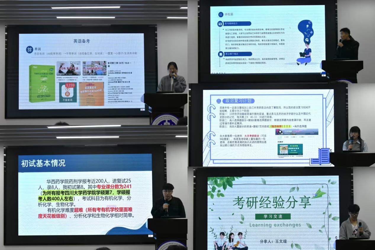 会上,王璐瑶分享了自己在英语学习方面的经验,向员工们分享了背单词的一些方法和渠道。李祥博介绍了考研考试中的一些基本情况。张安琦针对如何选择报考院校给员工做了详细的分析。邓文慧就政治学习方面给员工们分享了自己的学习方法和复习计划。王文瑄就自己的学习经历给大家介绍了一些注意事项。最后进入答疑解惑环节。他们解答了员工们提出的一些问题,并鼓励大家坚持不懈、持之以恒地学习,并收获一个自己满意的结果。