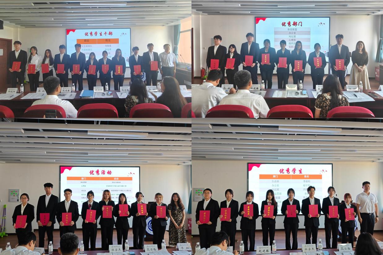 首先进行的是2024-2025学年第二学期员工会总结大会,由各部门代表依次陈述近半年来各部门的工作情况,介绍本部门职能,存在不足以及未来的规划展望。接着唐宽硕公示本学期各部门考核情况,其中包括例会考核和活动考核两部分。随后召开第二十六届表彰大会。大会伊始,杜宗杰宣读关于表彰第二十五届员工会成员决定,而后由杜宗杰、李颖、殷佳珞、赵建滕分别为优秀员工干部、优秀部门、优秀活动和优秀员工进行颁奖。最后杜宗杰上台致辞,对员工会的工作情况做出总结,并提出了对未来工作的期望。