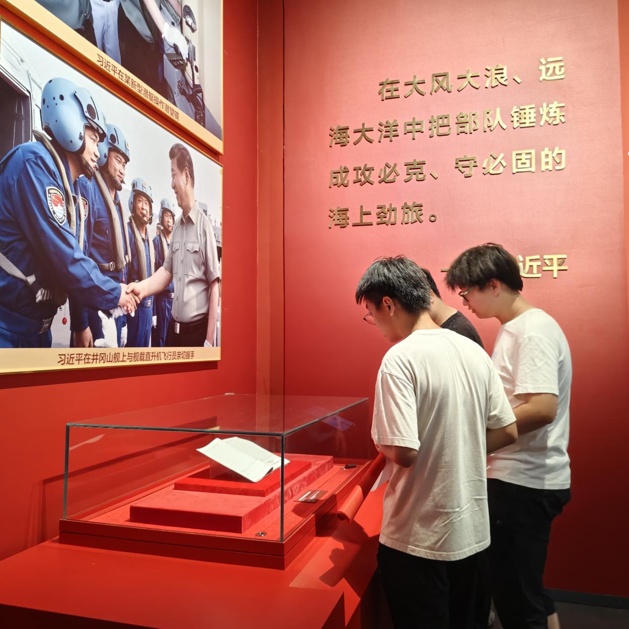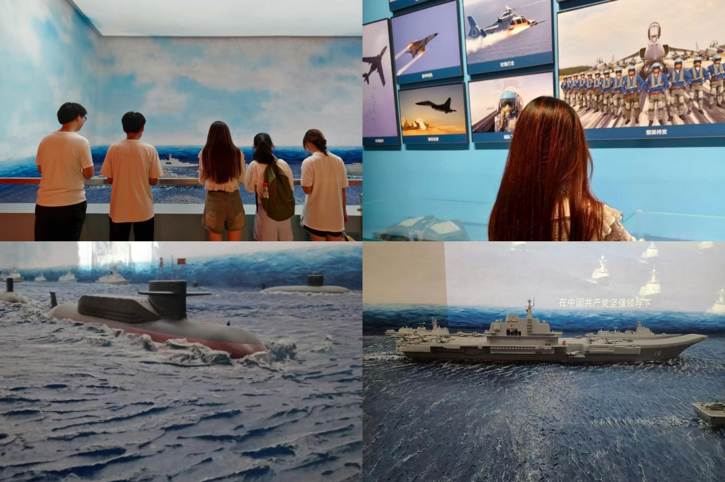 随后,团队移步至现代海军展区参观,了解学习现役海军的设施与设备。展区内设有辽宁舰航母的等比例缩小模型,以及反潜导弹、雷达系统等精密装备的仿真演示。馆内专业讲解员通过现场解说和播放高清纪录片,深入阐释了海军现代化建设的成就,如2020年南海演习中舰载机的作战流程,细节内容清晰明了,使参观者对海军科技发展有了全面认知。讲解过程中,团队成员积极提问,认真学习,加深了对现代战略防御系统的理解和认知。