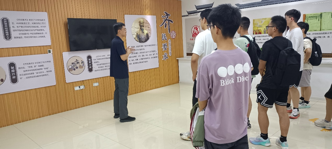 在与酿造技艺传承人交流时,老匠人现场演示了制曲、翻酱等关键工序。他手法娴熟,每一个动作都蕴含着代代相传的经验。“翻酱要讲究力度和频率,既要让酱料均匀接触空气,又不能破坏其发酵环境。”老匠人告诉同学们,古法酿造没有捷径,全凭经验和用心,这是祖先留下的智慧,必须好好传承下去。同学们认真记录着每一个步骤,不时提出疑问,在互动中加深了对传统技艺的理解。