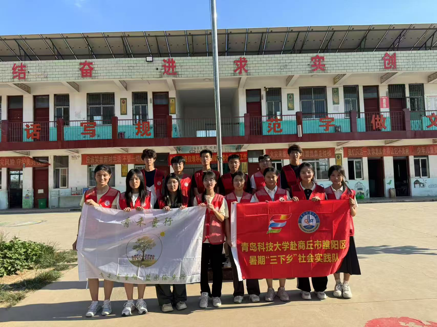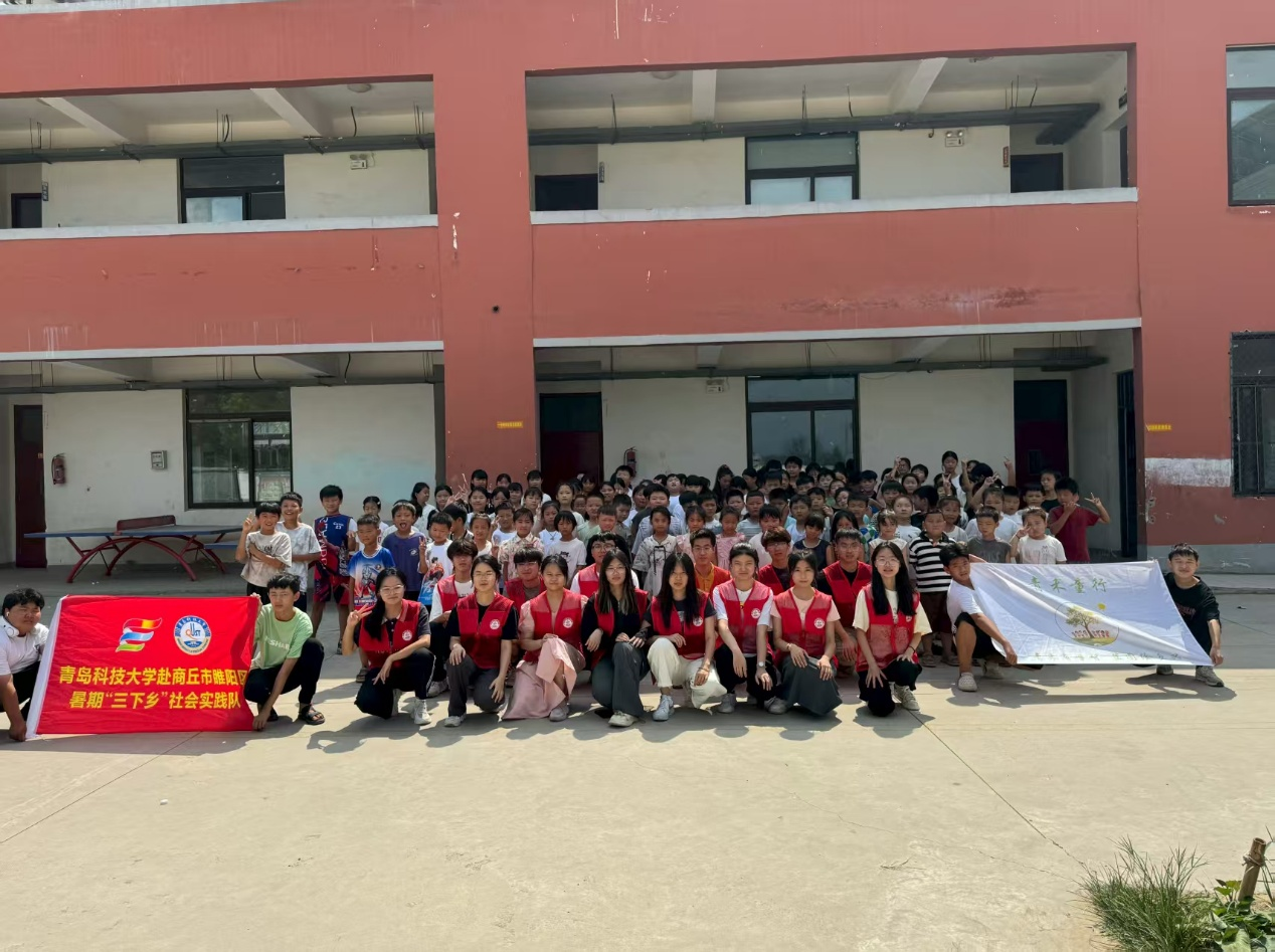 离别之际,支教团与全体员工在教学楼前合影。红色旗帜上“XC体育赴商丘市睢阳区暑期‘三下乡’社会实践队”的字样格外醒目,孩子们簇拥着志愿者,镜头定格下这段夏日里的温暖记忆。