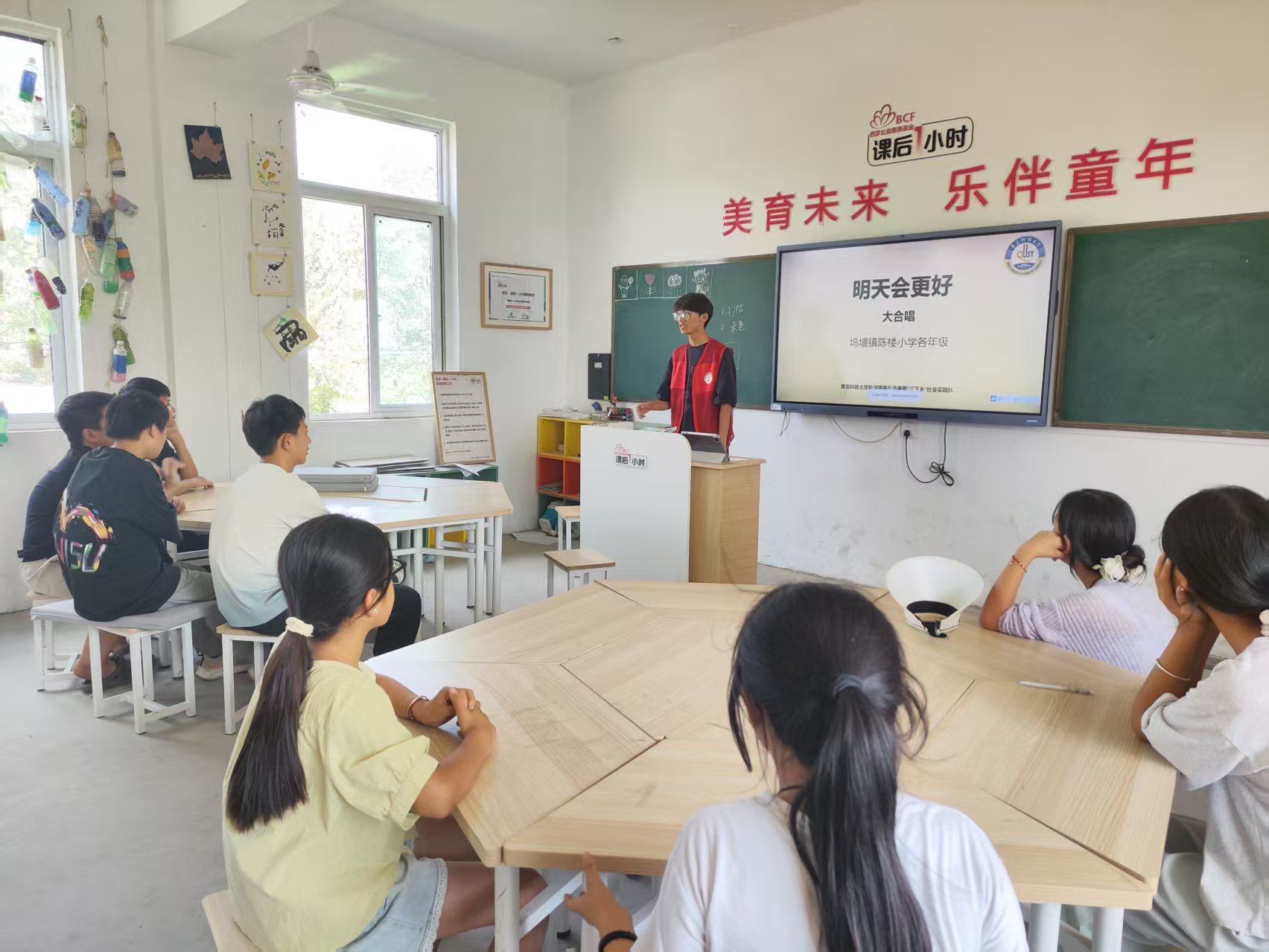 音乐课上,《明天会更好》的旋律在教室回荡。屏幕显示着歌词,志愿者带领孩子逐句学唱,童声清澈而坚定,“让我们的笑容,充满着青春的骄傲”的唱段里,藏着孩子们对未来的懵懂憧憬。