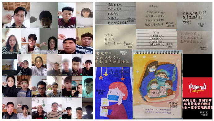 活动中,大家认真观看了青科大版《新型冠状病毒防控指南》,并且进行宣誓:“响应号召,服从安排,不信谣,不传谣,正确预防,调整心态,勤洗手,有信心,认真学习,为国效力,不负盛世,静待花开。”随后,大家分享对疫情的了解和看法,制作了以“向战疫英雄致敬,为战疫加油”为主题的作品。