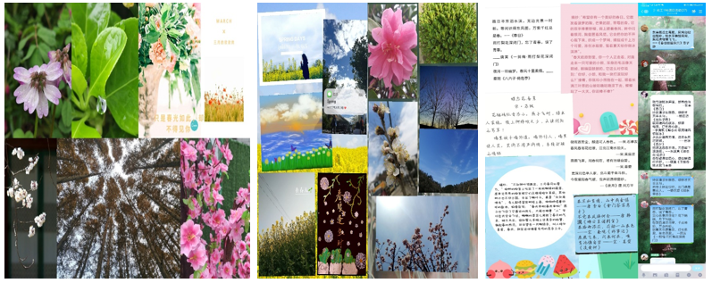 初春时节,大家因为突如其来的疫情仍在家中,但疫情隔绝不了同学们对春日的期盼。本次活动中,全班同学通过绘画、摄影、诗句摘抄等多种形式展现了心中春天的样子,并利用电子设备分享了各自的作品,共同在线讨论了各自心里春意盎然的景象。