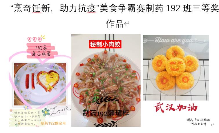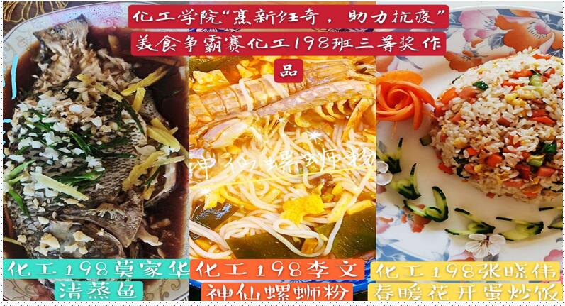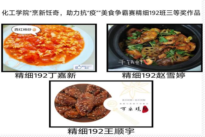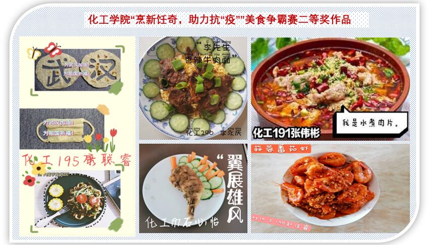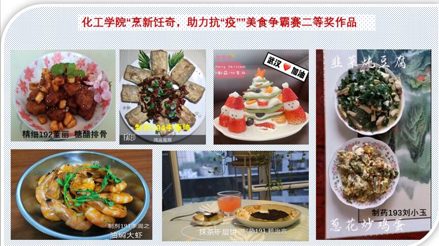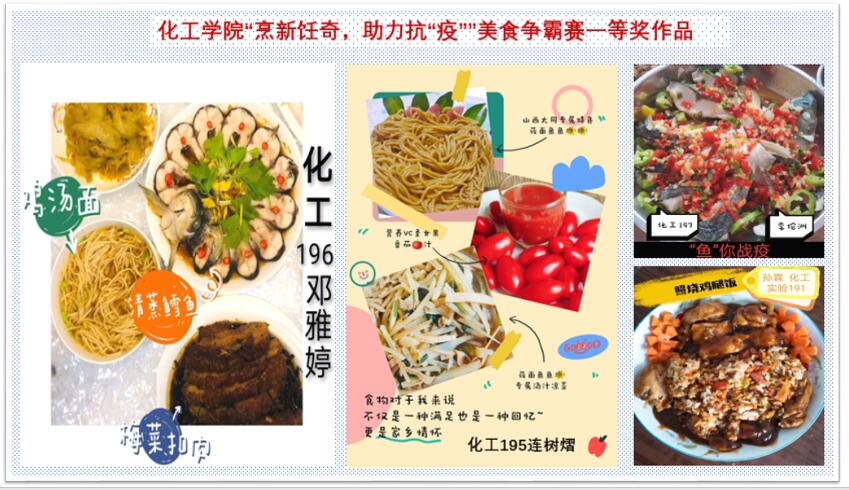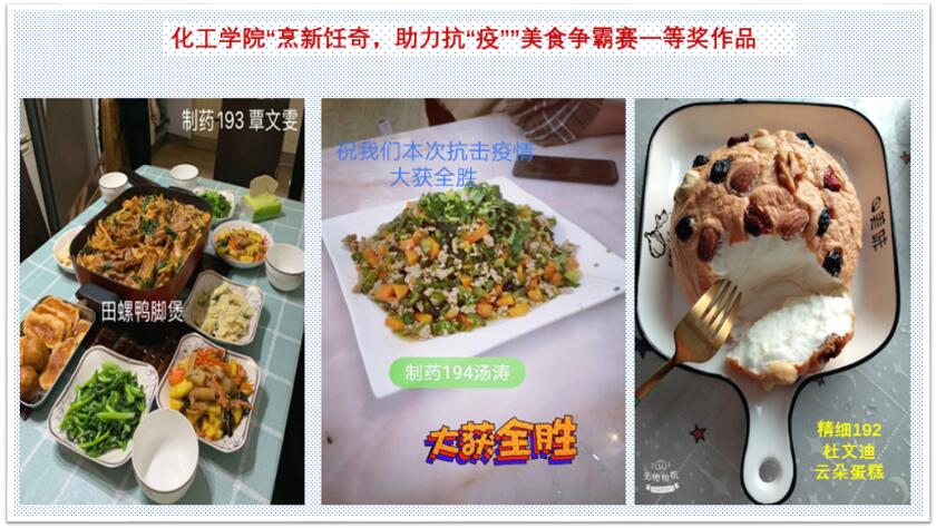 通过此次比赛,有利于丰富同学们的在家生活,展现了化工学子别具一格的厨艺和良好的精神风貌,更代表了同学们对美好生活的向往和期盼,用实际行动助力抗“疫”。
