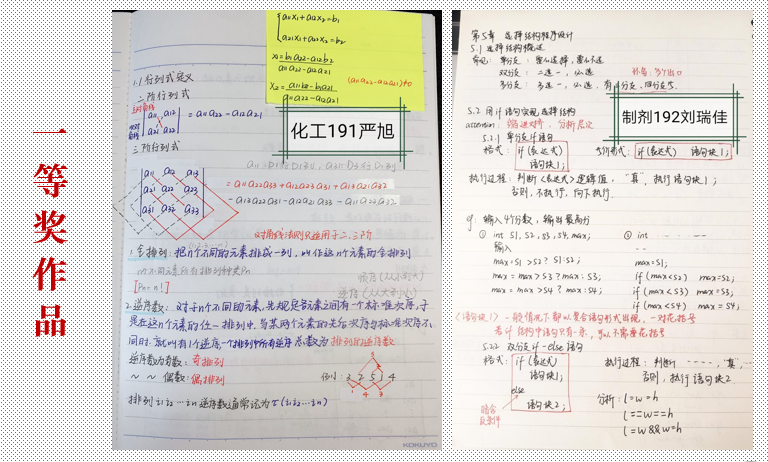 比赛分为班级初赛、公司复赛、易班投票决赛三个环节。活动得到各班级同学们的积极响应,纷纷报名参加,经过各班级初赛,共有51件作品进入复赛。复赛环节,以字迹清晰,逻辑清楚,内容全面为基本标准,再从卷面美观,舒适度方面层层筛选,共有20份优秀作品进入决赛。决赛环节,同学们通过易班投票,选出大家心目中最美的笔记。最终,评选出一等奖2名、二等奖3名、三等奖15名。